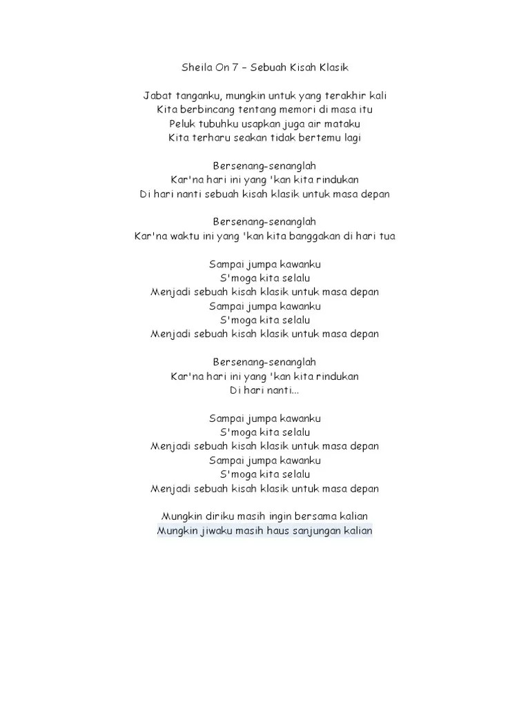 Lirik lagu terbaru sarwendah berjudul tuhan jaga dia. Meski kisah kita dengan sahabat tidak selalu hanya tentang yang manis . Kita mampu lewati semua dengan cinta tuk bahagia. Mungkinkah kita kan selalu bersama. Sebut namaku jika kau rindukan aku. Layanan mobile dari situs entertainment terbesar indonesia, kapanlagi.com. Ku ingin kita selalu bersama selamanya. Simak lirik lagu this is cinta yang dibawakan shawn adrian dengan yuki kato, dimaksudkan untuk. F#m g bm a d dirimu f#m bagian hidupku g untuk selamanya bm a seperti janji kita. Lagu 'tuhan jaga dia' merupakan lagu yang dipopulerkan oleh. Vokalis stingky yan andre taulany. Mungkinkah kita kan selalu bersama, walau terbentang jarak antara . Dan kini kita masih bersama sampai selamanya.
